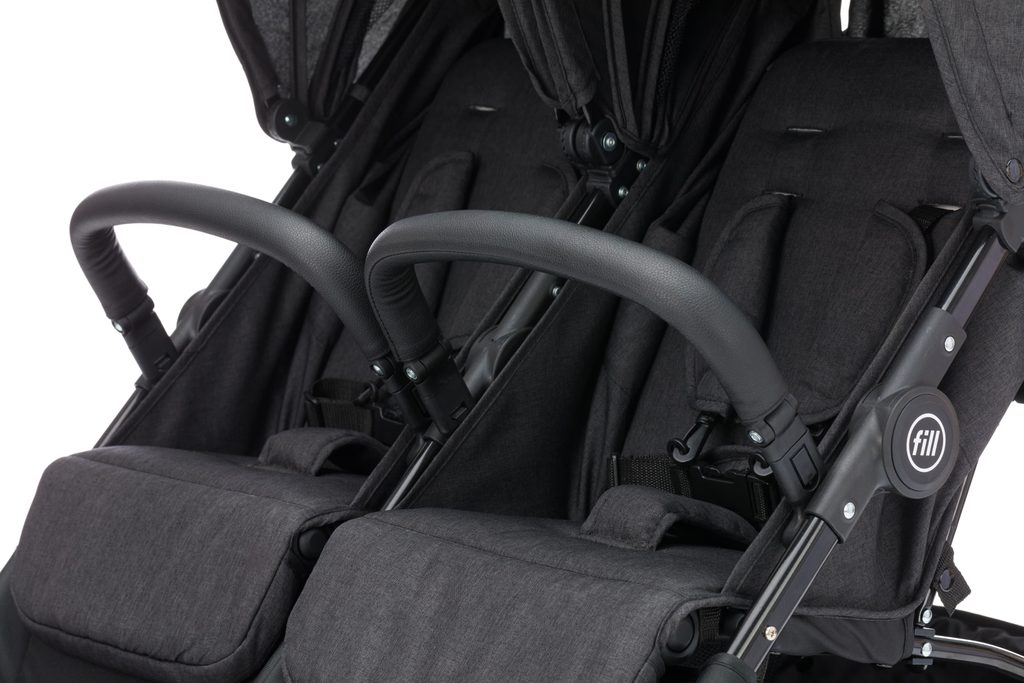 Bezpečnost je pro nás na prvním místě – polstrované 5bodové bezpečnostní pásy spolehlivě ochrání vaše nejmenší, zatímco sluneční stříšky s praktickými síťovanými okénky zajistí dostatečné větrání a umožní vám mít děti stále pod dohledem. Otočná a uzamykatelná přední kola navíc zaručují skvělou ovladatelnost a umožňují snadnou jízdu v jakémkoli terénu, ať už jdete po městě, v parku nebo na přírodních stezkách. S Fill Duo je každá společná cesta radostí!