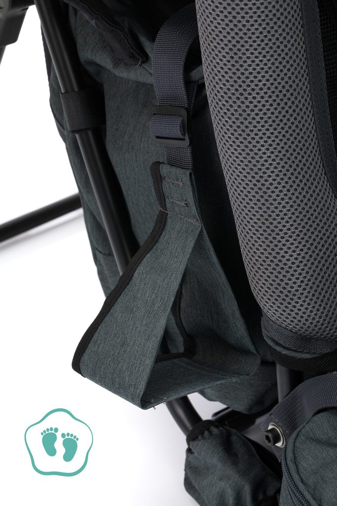 Krosna je navržena tak, aby bylo dítěti co nejpohodlněji – celá sedací část je měkce a kvalitně polstrovaná. Bezpečnost dítěte zajišťuje spolehlivý 5bodový bezpečnostní pás, který drží dítě pevně, ale pohodlně na svém místě. S nosností až 20 kg je nosítko vhodné i pro větší děti a díky více praktickým kapsám máte vše potřebné na dosah – láhev, svačinu, plínky i hračky.