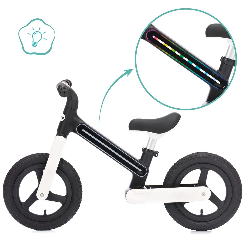 Výškově nastavitelná sedačka umožňuje, aby odrážedlo rostlo spolu s dítětem. Nafukovací kola si hravě poradí s každým terénem a zajišťují plynulou a stabilní jízdu. Odrážedlo není jen hračkou – je prvním krokem na cestě k samostatné a sebevědomé jízdě.