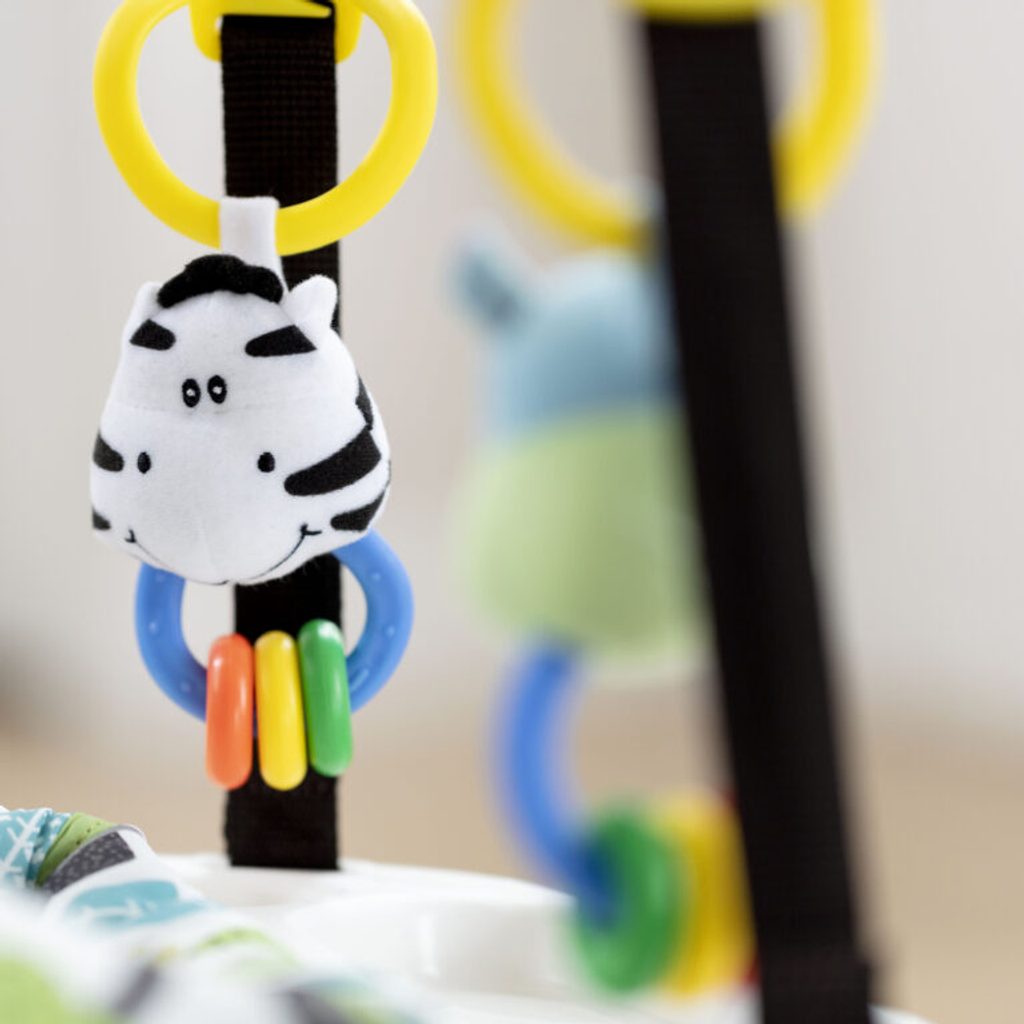 Překvapivá výbava - Abyste si s Bumper Jumper™ užili spoustu zábavy, vybavili jsme jej měkkými odnímatelnými hračkami, které spolu s hracím pultíkem nezkazí žádnou zábavu. A když už se něco nepovede, nevadí, potah sedátka snadno sundáte a vyperete v pračce.