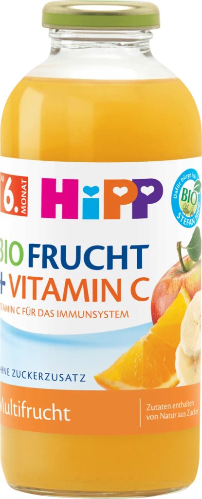 Hipp BIO ovocný nápoj je pasterizovaný nektar vyrobený z ovoce, které uzrálo na slunci a mělo dost času pro dozrávání a rozvinutí své plné chuti přirozeným způsobem. Nápoj je vyroben v BIO kvalitě, bez přídavku barviv, konzervačních látek, aromat a cukrů* a neobsahuje lepek. Nektary od značky Hipp jsou zdrojem vitamínu C, který podporuje obranyschopnost organizmu dítěte. Obsahuje přirozeně se vyskytující cukry.