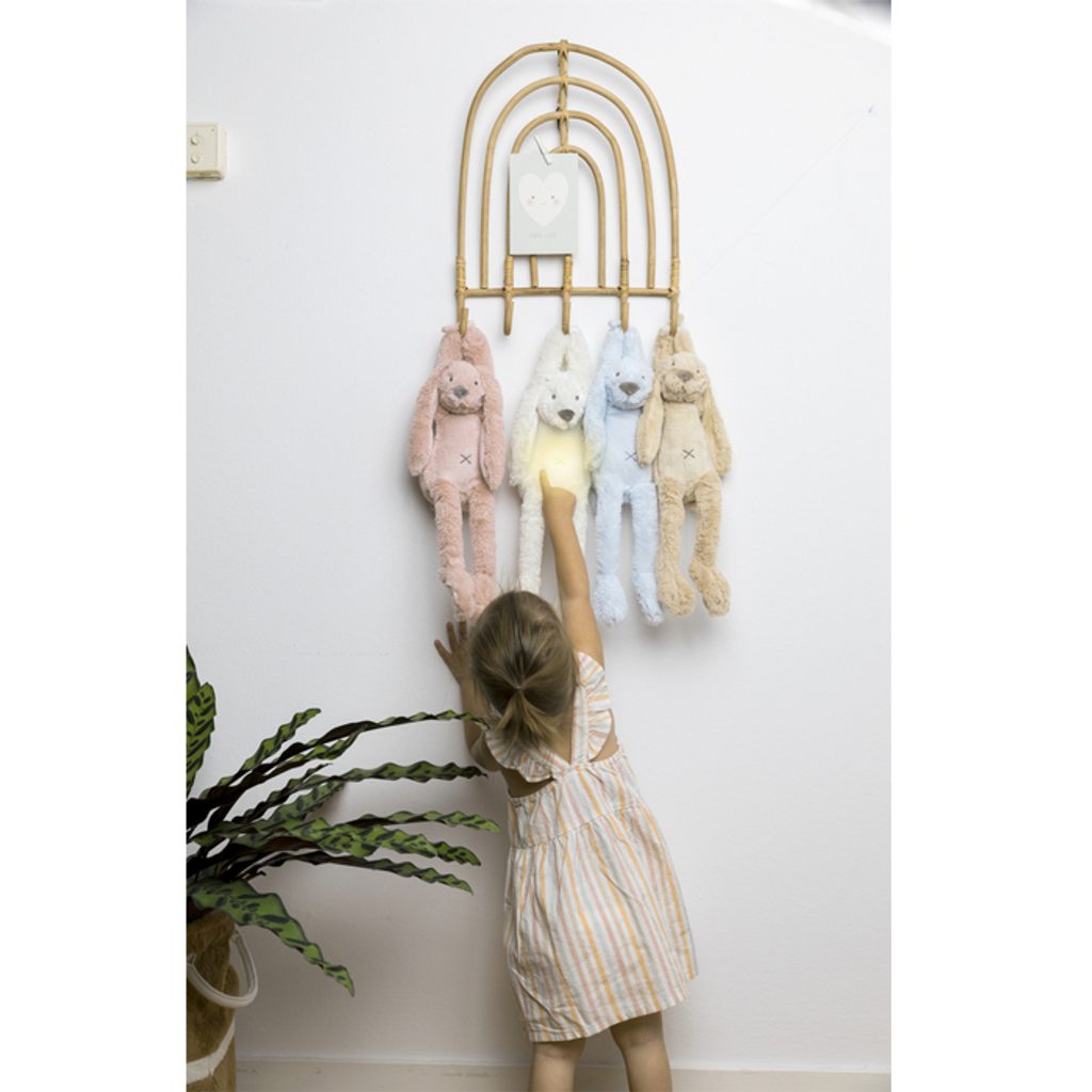 Králíček hraje tři ukolébavky, uklidňující tlukot srdce maminky a zvuk bílého šumu. Součástí je i noční světýlko v pěti barvách (modrá, zelená, fialová, bílá, žlutá). Nabíjení probíhá pomocí USB kabelu cca 2 hodiny do úplného nabití. (Součást balení micro USB). Výdrž baterie je cca 3-5 hodin záleží na způsobu použití.