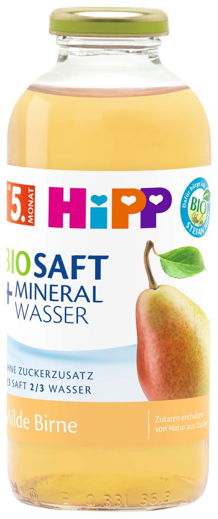 HiPP BIO nápoj hruška s neperlivou vodou. S vodou, která pochází z pramene George Hippa.