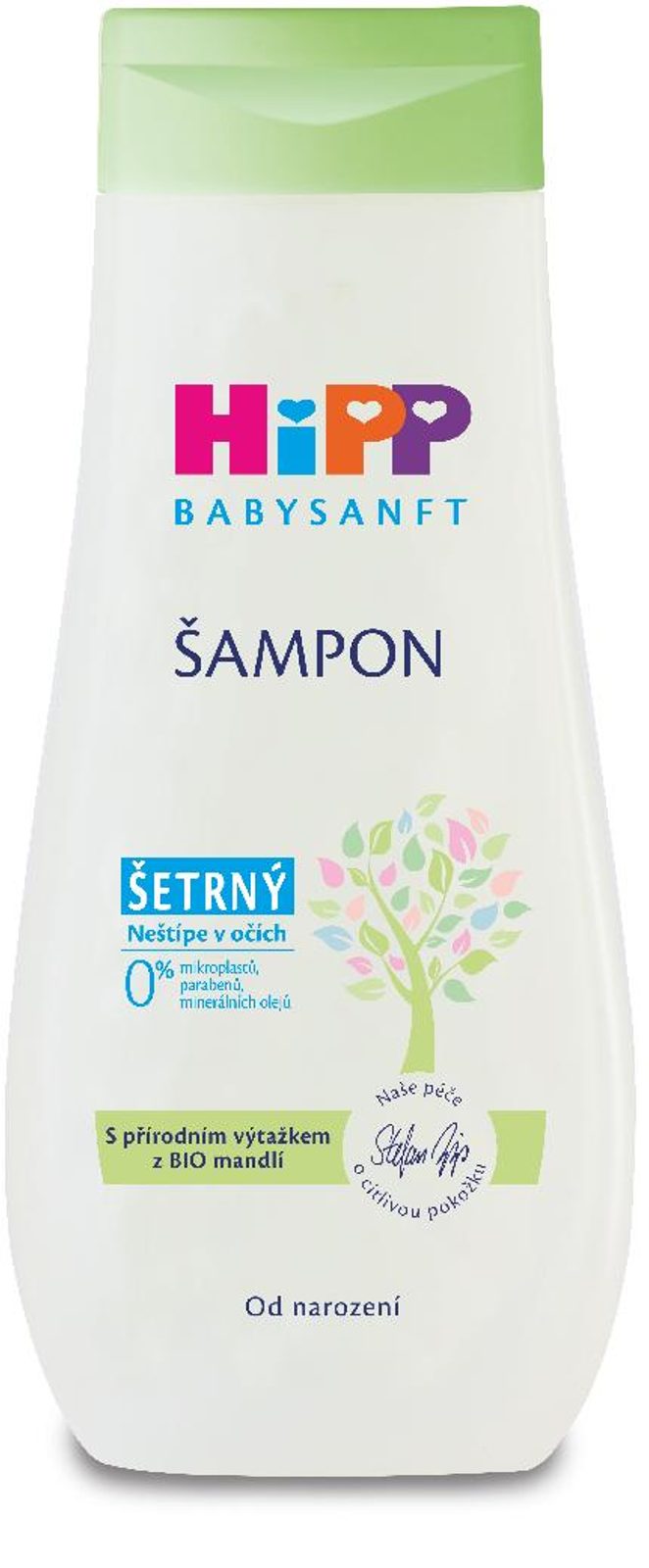 HiPP Jemný šampón s cennými přírodními složkami z BIO mandlí šetrně myje dětské vlásky a pečuje o citlivou pokožku hlavy. Neobsahuje mýdlo, zachovává přirozený kyselý plášť pokožky, udržuje její přirozené pH a neštípe do očí. Po umytí budou vlásky jemné a lesklé. Je vhodný od narození, i pro pokožku se sklonem k atopické dermatitidě.