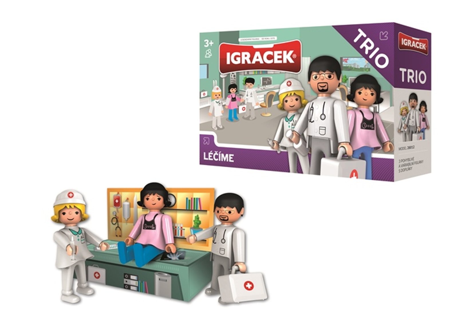 Doktor, sestřička a pacientka. Každou bolístku, se kterou přijdeš do ordinace, vyléčí šikovný pan doktor. Hodná sestřička ti píchne včeličku a je po problémech. Tři Igráčci s příslušenstvím v jednom balení.