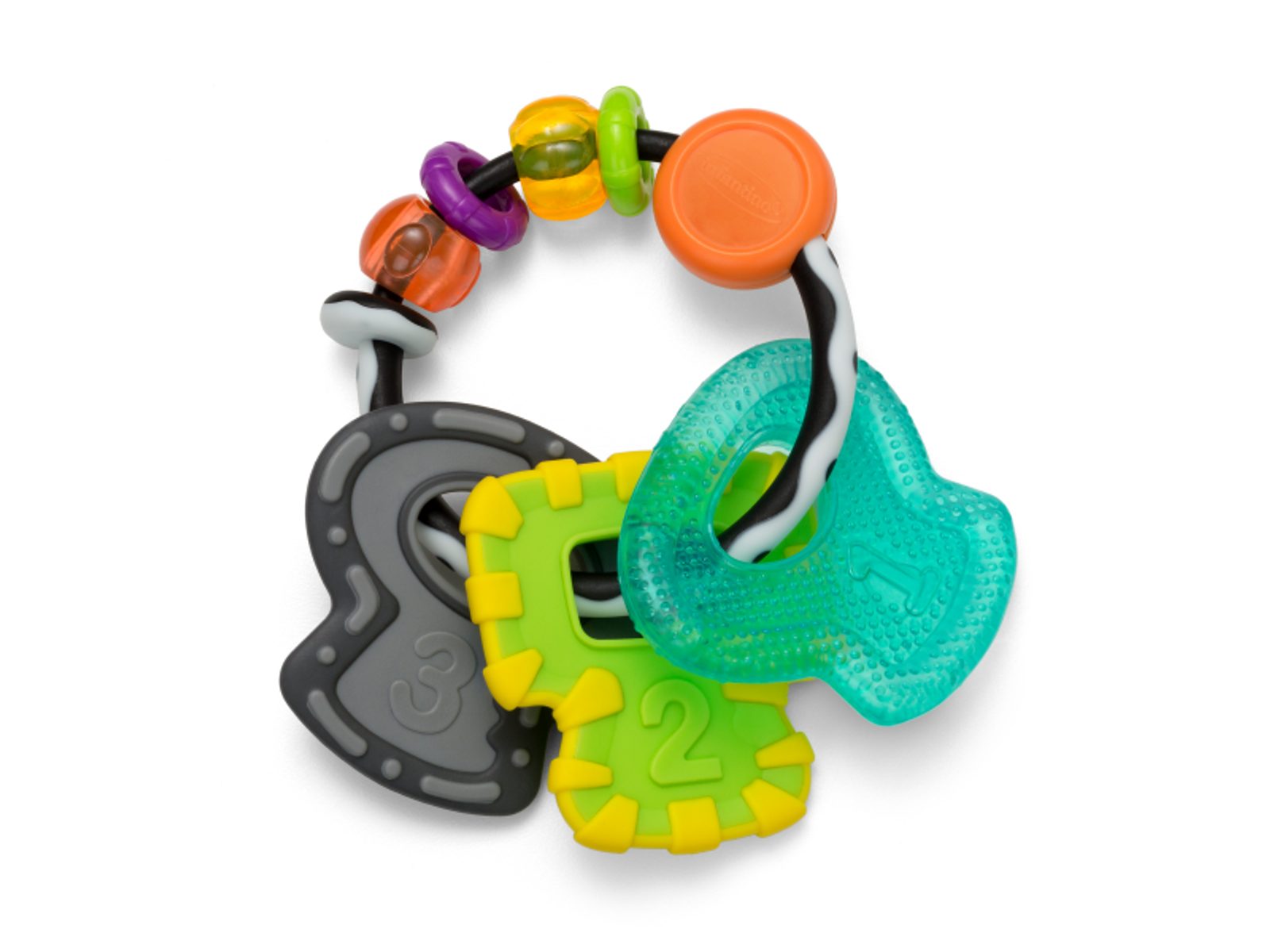 Chrastítko a kousátko ve výrazných barvách dítě zabaví i uleví jeho citlivým dásním při prořezávání zoubků. Tvar hračky umožňuje snadné uchopení dětskými ručičkami. Vhodné od narození.