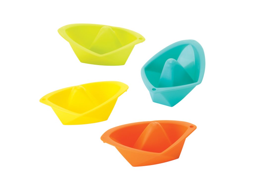 Sada čtyř lodiček pro hraní ve vodě. Lodičky je možné navzájem propojovat, skládat na sebe i nabírat s nimi vodu. Jednoduchá hračka, která zabaví vaše dítě během koupání každý den. Rozměry: 11 x 9,5 cm Vhodné pro děti od 3 měsíců.