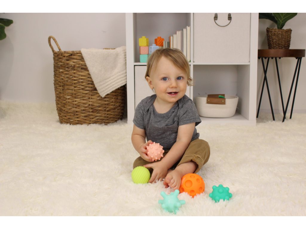 Sada měkkých barevných míčků různých velikostí a povrchů je ideální pro hru, relaxaci i smyslový rozvoj vašeho dítěte. Různé struktury a výstupky stimulují hmat a podporují objevování světa dotykem.