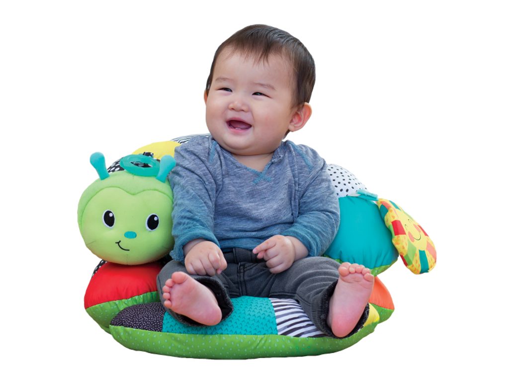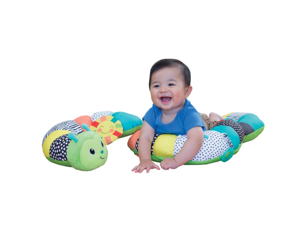 Skládací polštářek ve tvaru plyšové housenky je skvělá hračka, která podporuje motorický vývoj dítěte. Housenka může být použita dvěma základními způsoby: opěrný polštářek pro hru v poloze na bříšku, která je důležitá pro rozvoj svalů na krku a zádech křesílko s opěrkou pro děti, které začínají samostatně sedět. Odnímatelné hračky včetně kousátka je možné připevnit na různá místa na polštářku. Housenka ve výrazných barvách bude sloužit i jako krásná dekorace dětského pokoje. Rozměry balení: 46 x 30,5 x 15,5 cm Vhodné pro děti od narození.
