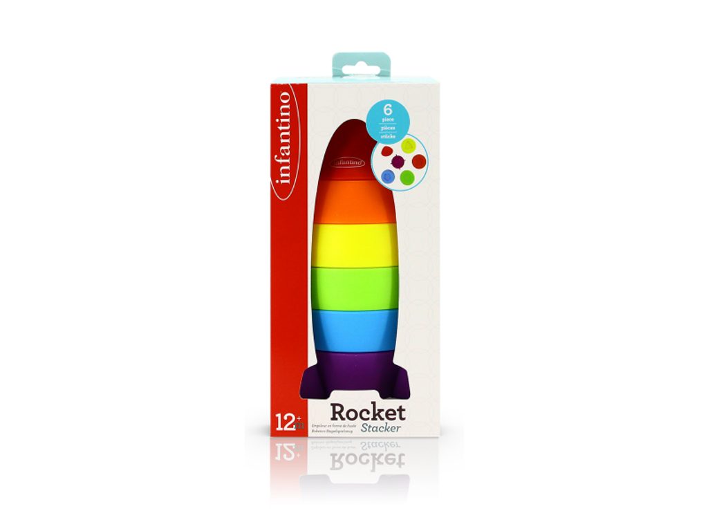 Pestrobarevná 6-dílná skládačka v podobě rakety poskytne vašemu dítěti skvělou zábavu a variabilní hru. Hračka zároveň pomáhá rozvíjet jednotlivé smysly, jemnou motoriku, koncentraci i logické myšlení dítěte. Vyrobeno z příjemného, kvalitního plastu. Rozměry složené rakety: 20 x 10 x 10 cm Vhodné pro děti od 12 měsíců.
