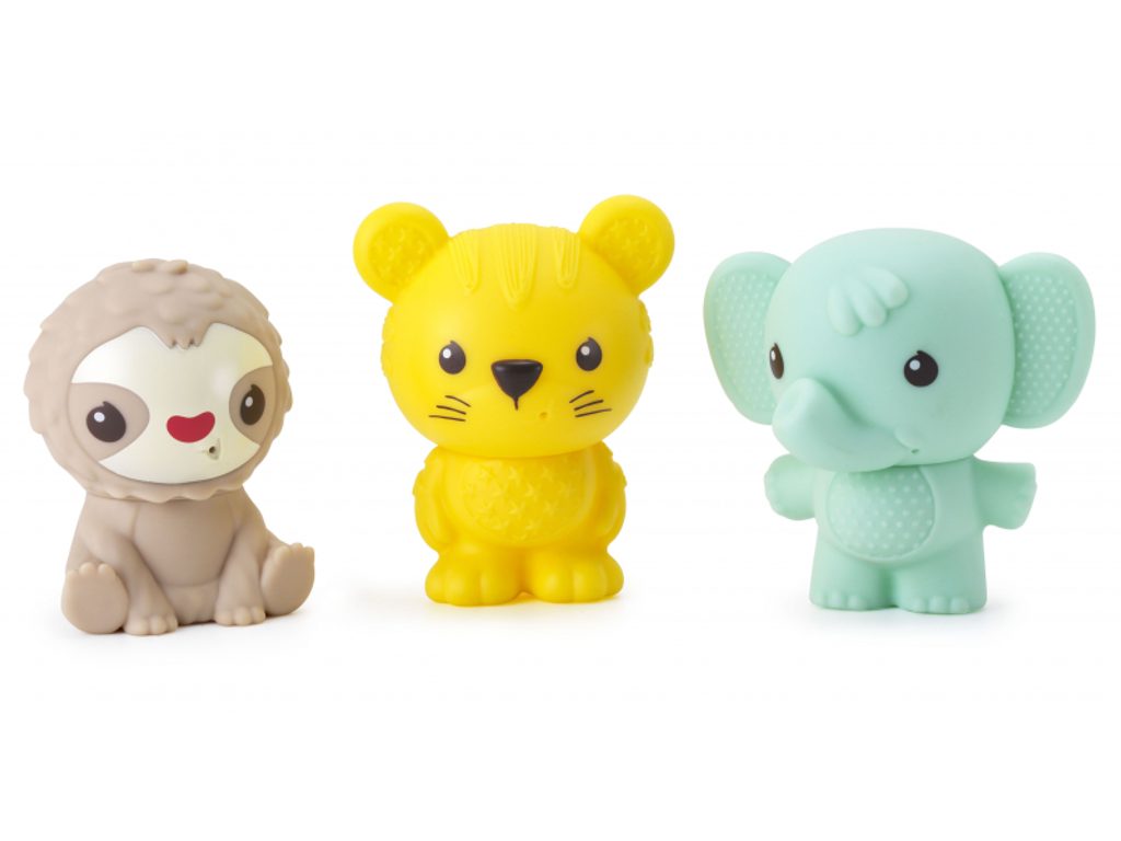 Tři dvoudílné šroubovací postavičky zvířátek ze zoo zajistí vašemu dítěti spoustu zábavy při koupání. Horní a spodní díly postaviček lze spolu libovolně kombinovat a vytvářet tak pokaždé jiné figurky. Při zmáčknutí figurky stříkají vodu pro ještě více zábavy ve vaně. Dvoudílné provedení umožňuje figurky po skončení koupele rozšroubovat, důkladně opláchnout a nechat zcela vyschnout. Vhodné pro děti od narození.