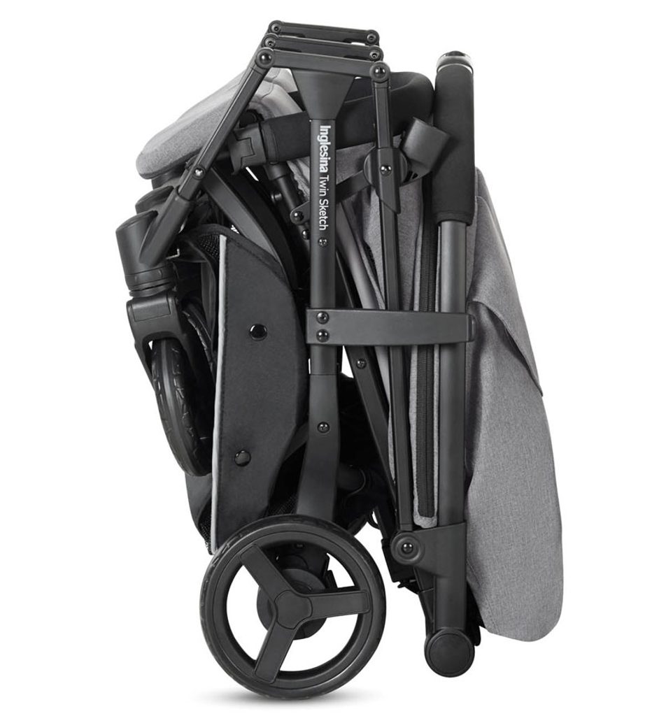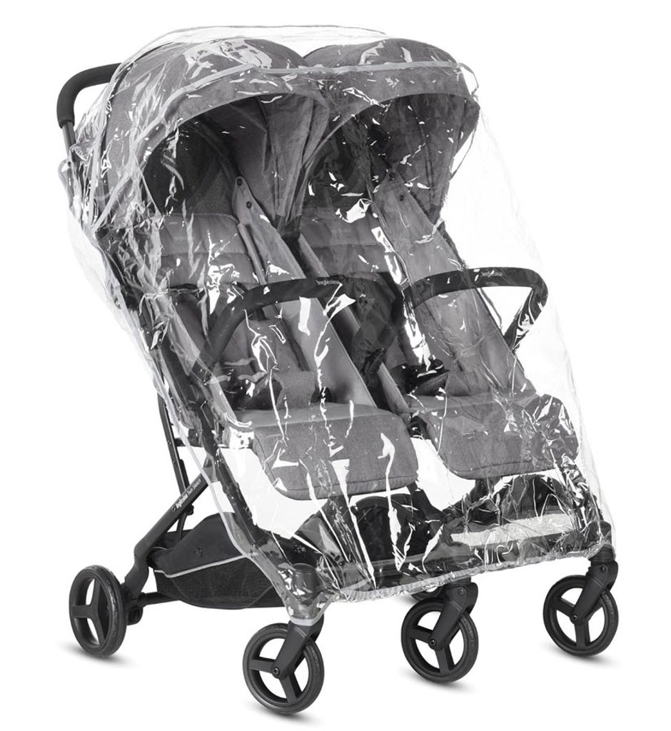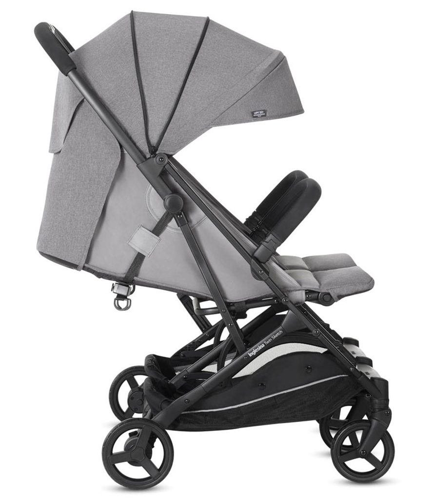 Lehký a kompaktní kočárek pro dvojčata v šedé barvě, dobře jej využijete také pro věkově blízké sourozence. Vhodný již od narození.