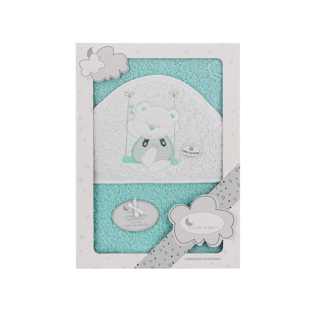 Interbaby Osuška froté Medvídek na houpačce zelená