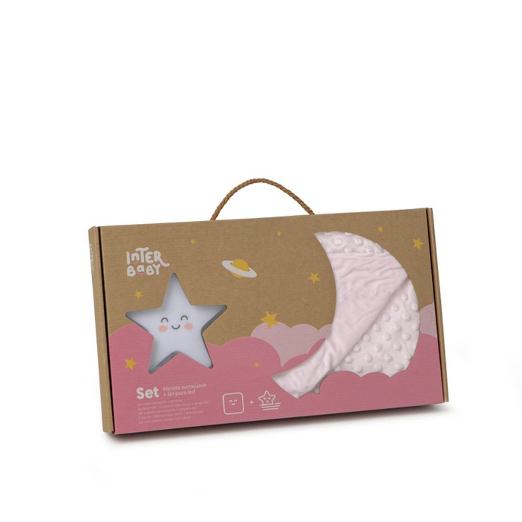 Interbaby SET Deka měkká KULIČKY 80x110 + lampička HVĚZDA - růžová