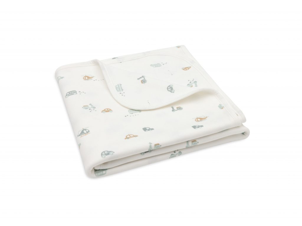 Měkká a prodyšná dětská deka ze 100% bavlny s veselým potiskem autíček a dalších dopravních prostředků. Perfektní pro každodenní přikrytí miminka v kočárku, kolébce nebo košíku.