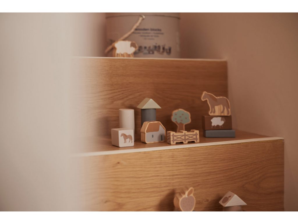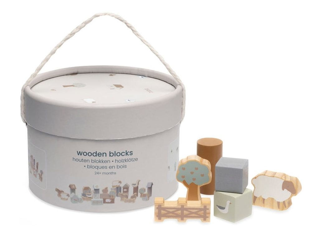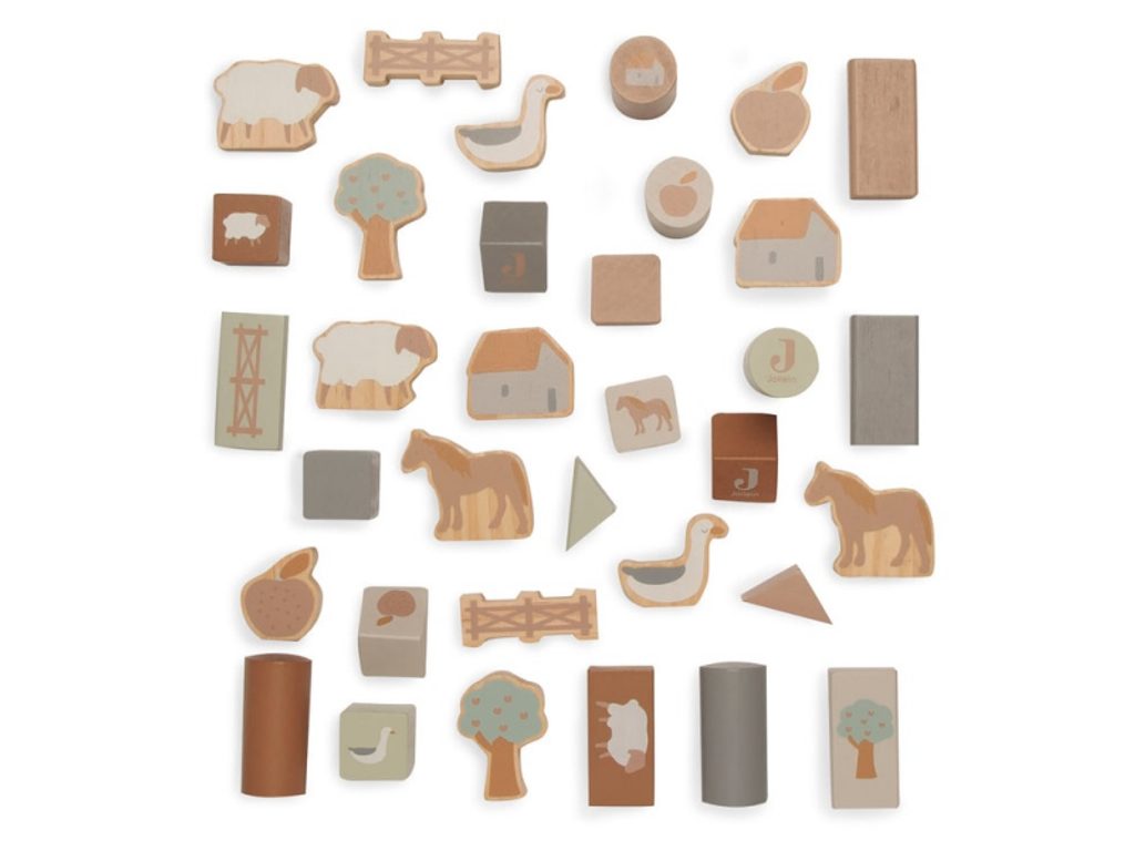 Dřevěné kostky jsou doslova nezbytností do každého dětského pokoje. Tuba obsahuje 34 dřevěných kostek různých barev a tvarů s krásným potiskem motivů ze života na farmě. Popusťte uzdu fantazii a vytvářejte spolu s vaším dítětem kreativní stavby. Když hra skončí, jednoduše kostky uložíte zpět do tuby! Vyrobeno z dřeva certifikovaného FSC. Rozměry balení: 18 x 18 x 12 cm Vhodné pro děti od 2 let.