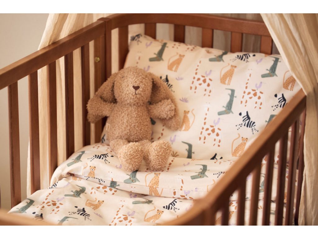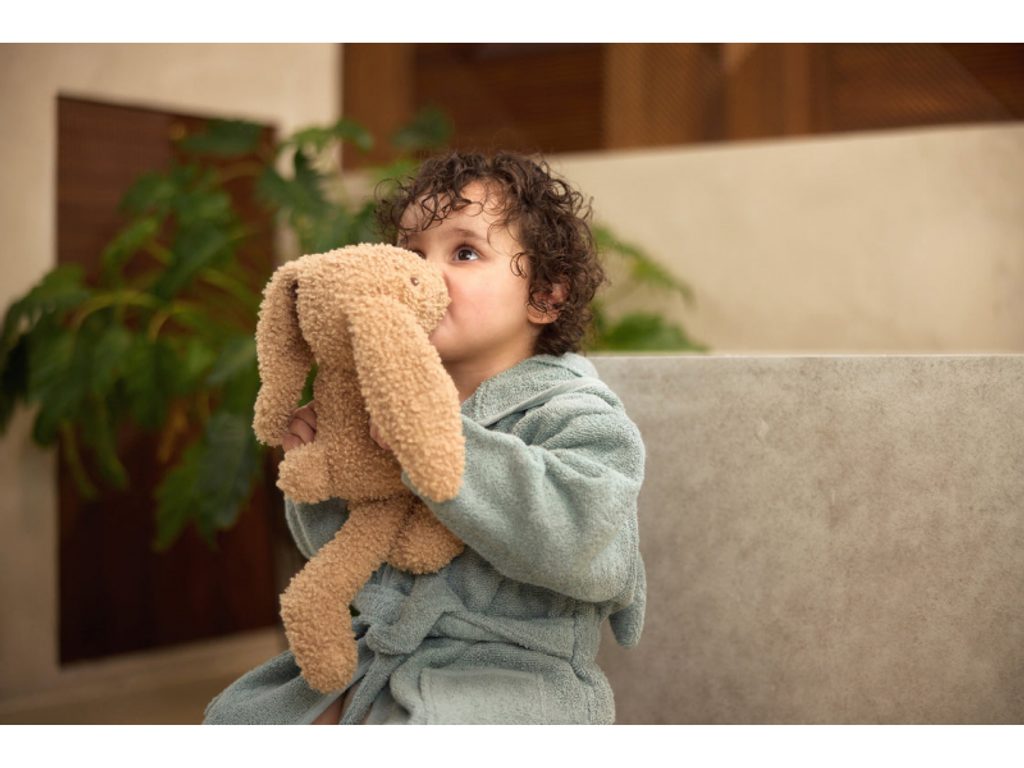 Tento roztomilý králíček z měkkého buklé materiálu je ideální mazlík do postýlky, který pomáhá dětem klidně usínat. Může se stát oblíbeným společníkem při hrách i krásnou dekorací v dětském pokoji.