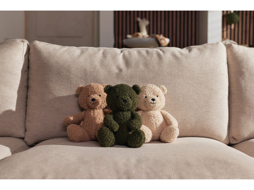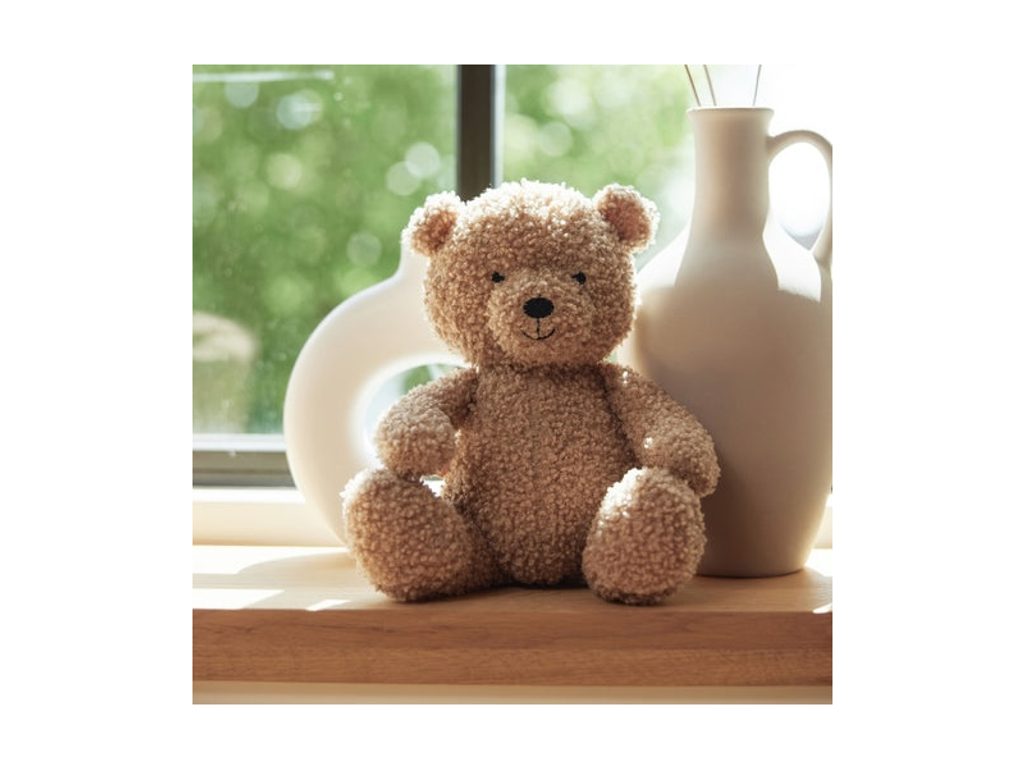Roztomilý medvídek z měkkého buklé materiálu je vhodný jako mazlík do postýlky pro klidné usínání. Může se stát součástí mnoha dětských her i sloužit jako krásná dekorace v dětském pokoji.