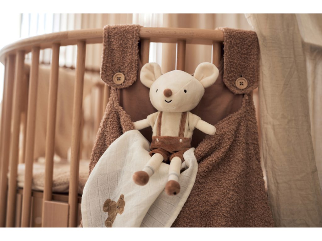 Měkký plyšák v podobě roztomilé myšky v kalhotách s kšandami je vhodný jako mazlík do postýlky pro klidné usínání. Může se stát součástí mnoha dětských her i sloužit jako krásná dekorace v dětském pokoji. Výška: 32 cm Složení: 100% polyester, výplň: 100% polyester.