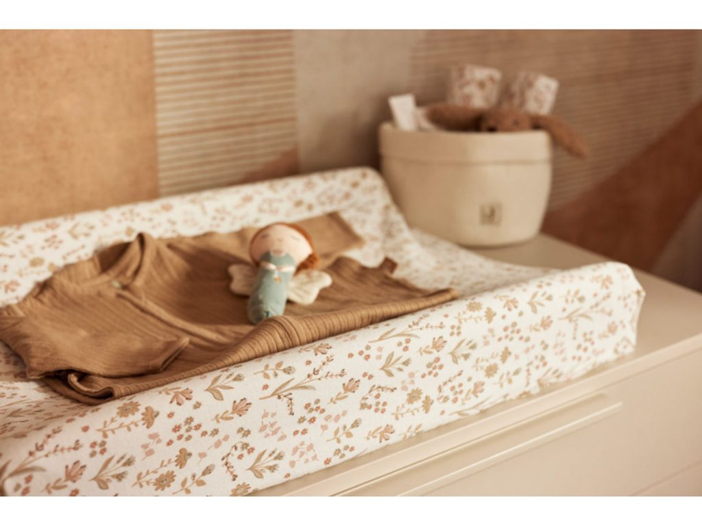 Tento žerzejový potah s krásným potiskem je ideální pro potažení přebalovací podložky o rozměru 70 x 50 cm. Elastický pásek na okrajích zajistí, že potah pevně drží na podložce a neshrnuje se. Měkký 100% bavlněný materiál je příjemný na dotek a zabraňuje tomu, aby podložka chladila dětskou pokožku.