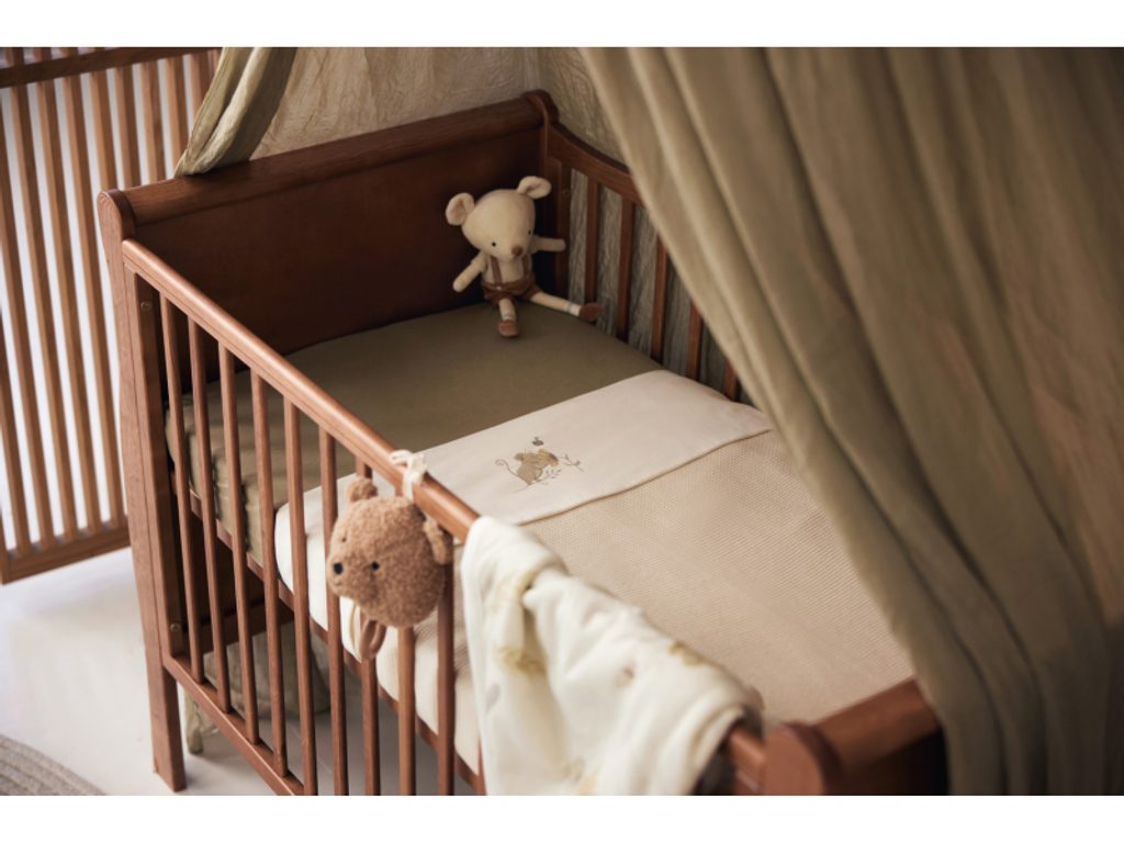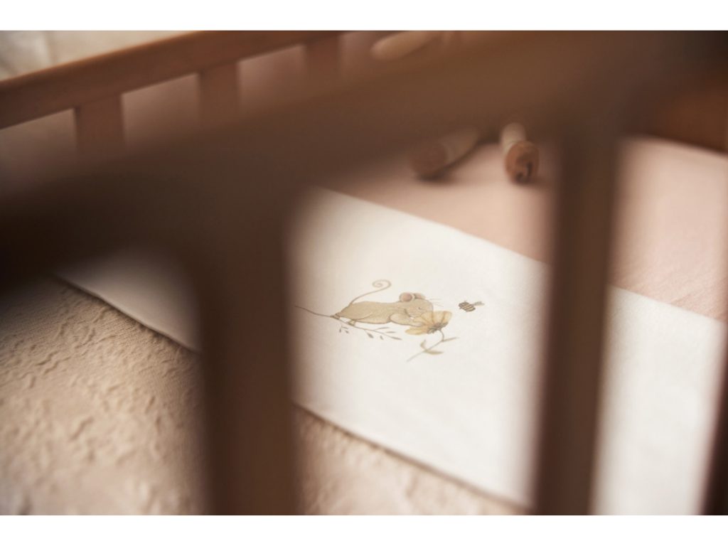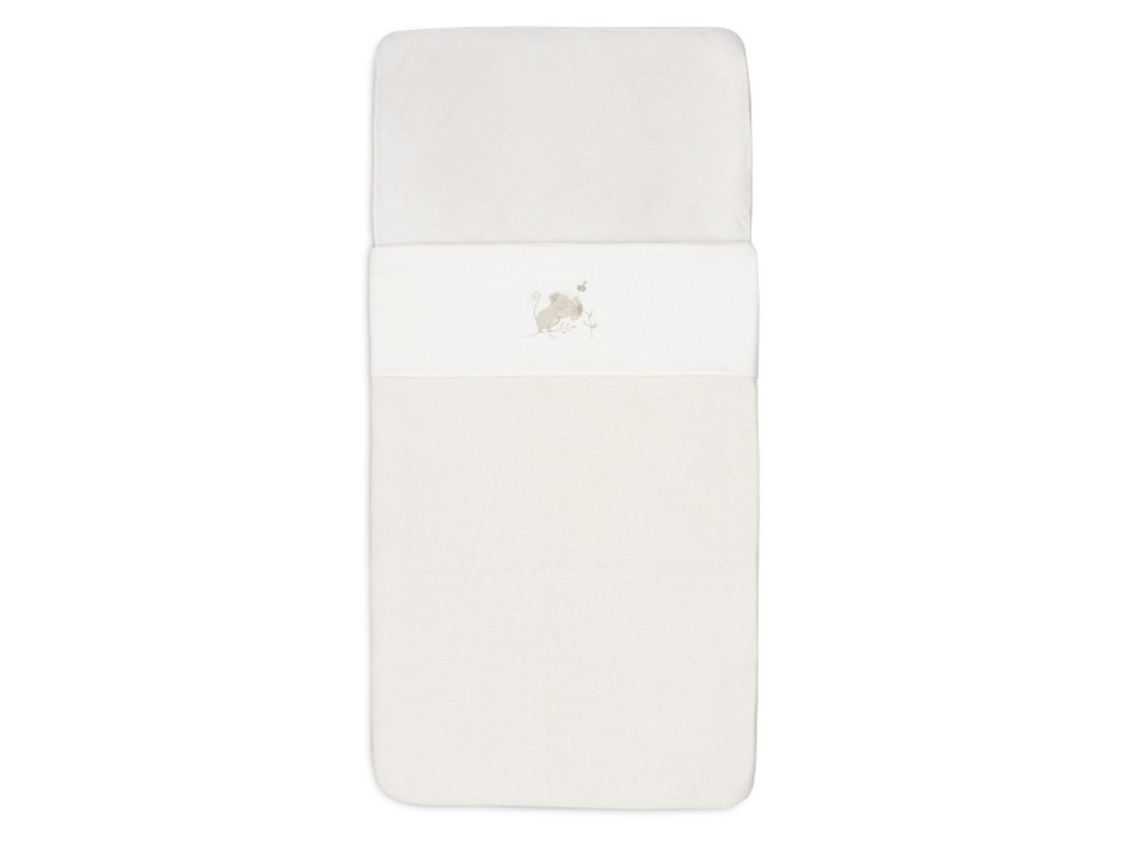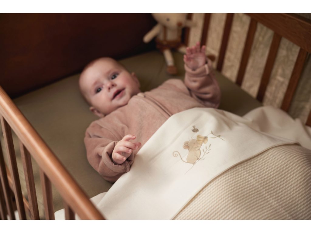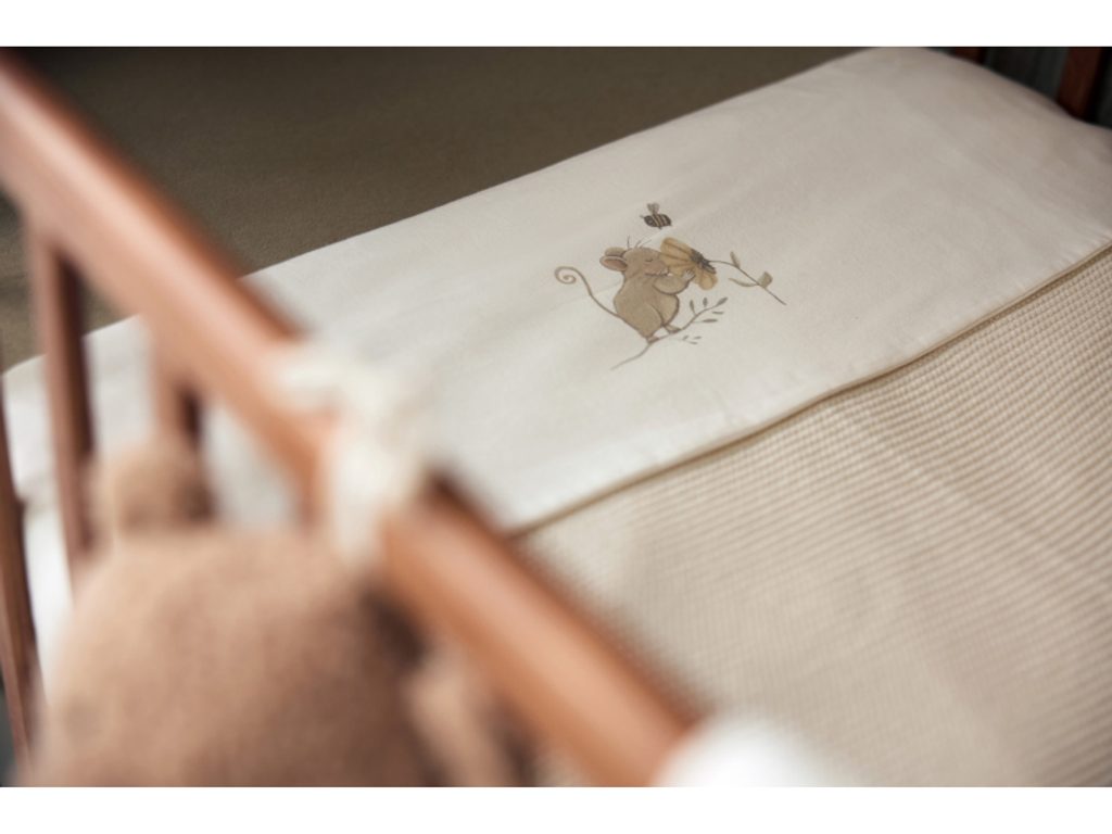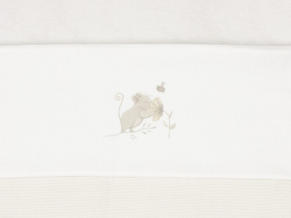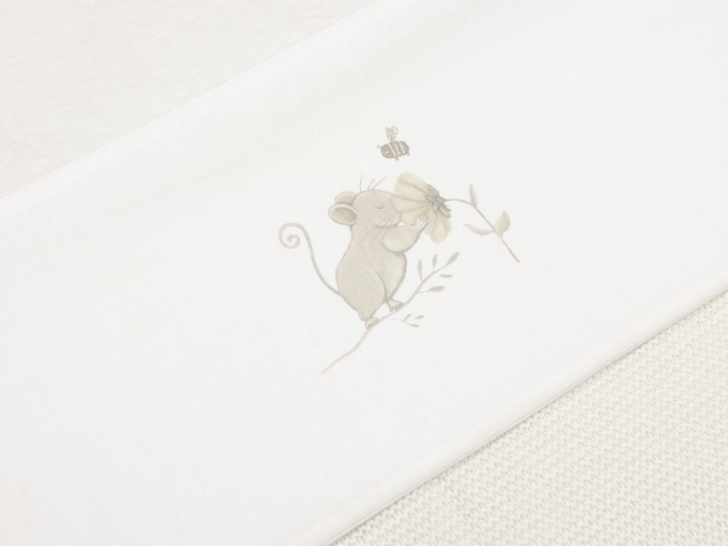 Prostěradlo z měkké, jemné 100% bavlny s motivem roztomilé myšky je ideální jako doplněk k pletené či fleecové dece, kterou přikrýváte miminko v košíku či postýlce. Chrání deku před znečištěním podobně jako klasické povlečení. Rozměry: 75 x 100 cm