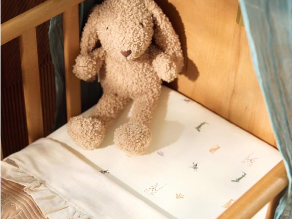 Napínací prostěradlo do dětské postýlky je vyrobené z měkké, jemné 100% bavlny s krásným potiskem pro pohodlí vašeho dítěte.