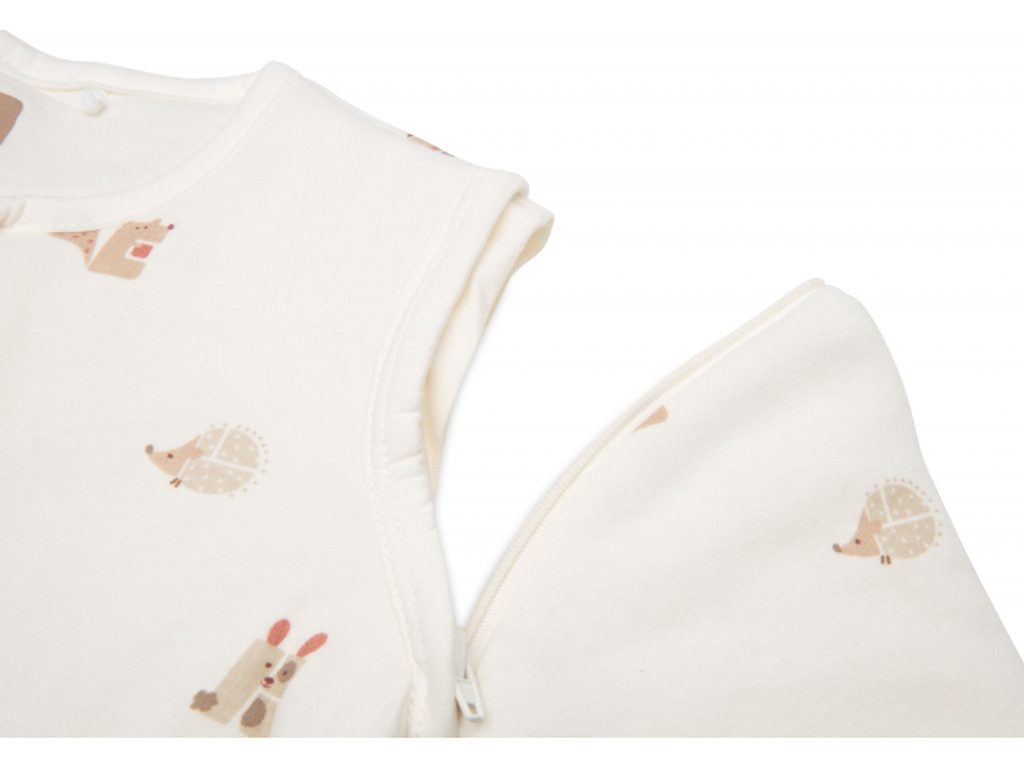 Praktický spací pytel s oddělitelnými rukávy nabízí variabilitu při použití dle počasí a teploty v místnosti. Díky jemné výplni je vhodný pro použití místo peřinky. Spací pytel zajistí, že se dítě v noci neodkope a bude tak po celou dobu spánku v pohodlí a teple bez rizika prochladnutí. Kryté zipy v průramcích umožňují snadné oddělení rukávů, pokud chcete spací pytel používat v teplejším prostředí bez rukávů. Zip na přední straně umožňuje snadné vložení dítěte do spacího pytle i přebalování během spaní. Spací pytel je testován na TOG hodnotu, která určuje hřejivost spacích pytlů a dek. Čím vyšší je hodnota TOG, tím je produkt teplejší. Spací pytel s rukávy má hodnotu TOG 3,5, bez rukávů má hodnotu TOG 2,5, jedná se tedy o spací pytel vhodný pro celoroční použití. Složení: 100% bavlna, výplň 100% polyester Rozměry: 110 x 51 cm Určeno pro děti od 18 do 24 měsíců.