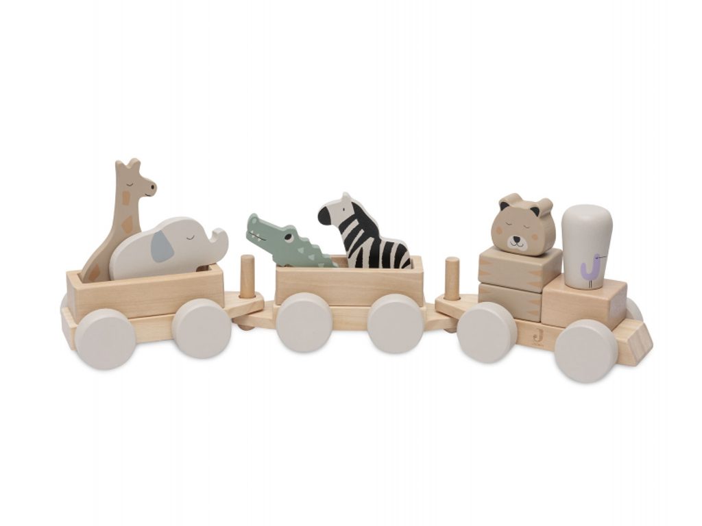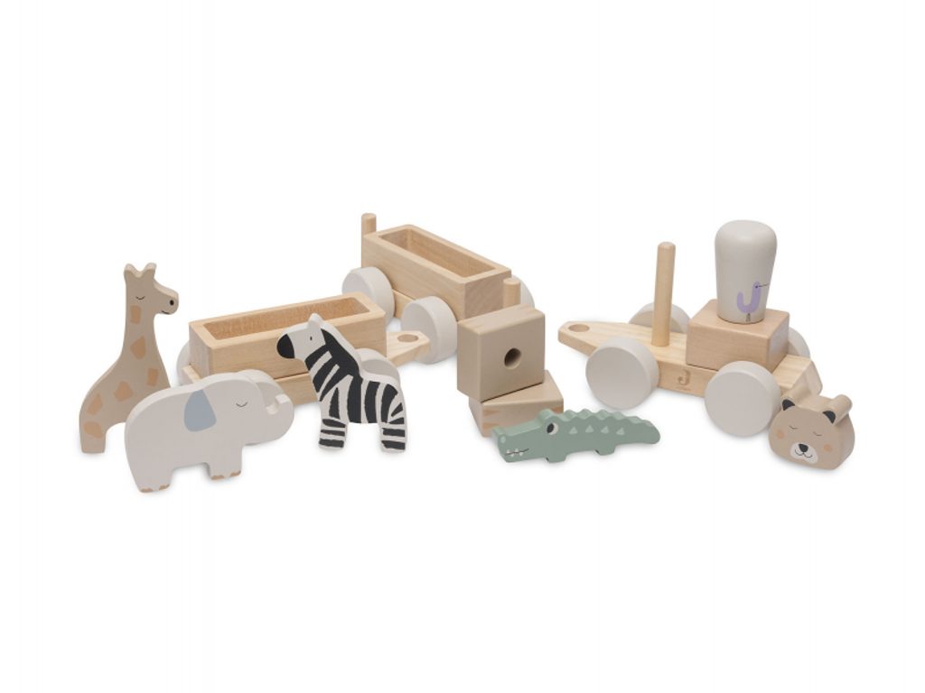 Dřevěný vláček se dvěma vagóny, čtyřmi zvířátky z džungle a strojvedoucím v podobě geparda zajistí vašemu dítěti hodiny kreativní zábavy. Vláček v krásném dřevěném provedení bude sloužit i jako originální dekorace v dětském pokoji.