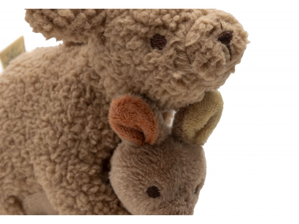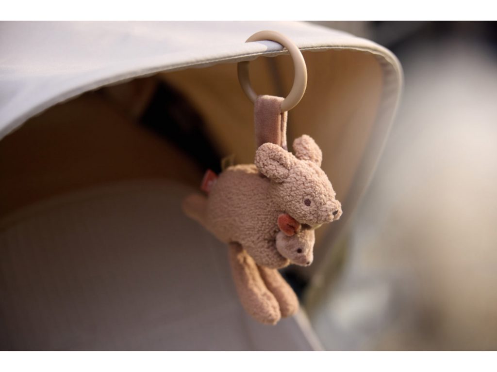 Závěsná hračka Kangaroots od Jollein je roztomilá klokaní maminka s klokánkem, která bude miminko bavit na každé procházce i výletě. Vyrobená z měkkého a příjemného fleece materiálu přímo vybízí k dotýkání, mačkání a zkoumání – a svým kouzelným vzhledem potěší děti i rodiče.