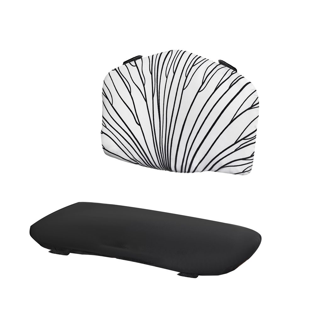 2 polštáře – pro sedák a opěradlo poskytují ideální podporu zad a hýždí, a pomáhají udržet správné držení těla při jídle.