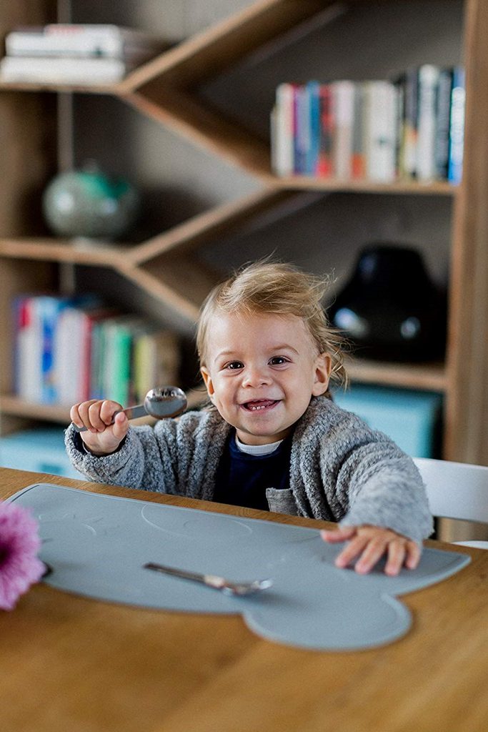 Kindsgut - KINDSGUT Silikonová podložka Medvídek tmavě šedá