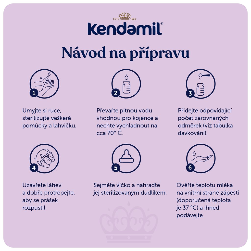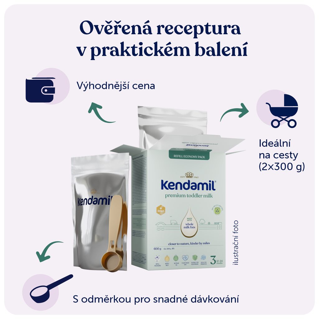 Kojení je nejlepší způsob výživy vašeho dítěte. Kendamil Premium 3 HMO+ je určen pro výživu malých dětí od ukončeného 12. měsíce a měl by tvořit pouze součást jejich smíšené a vyvážené stravy. Při krmení z lahvičky zamezte nepotřebnému prodlužování kontaktu savičky se zoubky, zvyšujete tím riziko zubního kazu. Pečujte o hygienu ústní dutiny dítěte, především před spaním. Dodržujte pokyny pro přípravu, krmení a skladování, jinak ohrozíte zdraví dítěte. Není určeno pro děti do 12 měsíců.