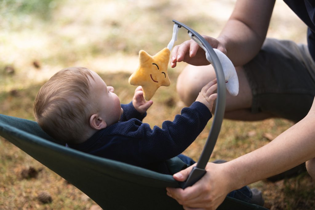 Odnímatelná hrazdičkaHoupačka je vybavena zcela odnímatelnou hrazdou se dvěma hračkami, které poskytují dítěti další zábavu. Hrazdu lze snadno vyjmout, což usnadňuje přístup k miminku a čištění houpačky. |