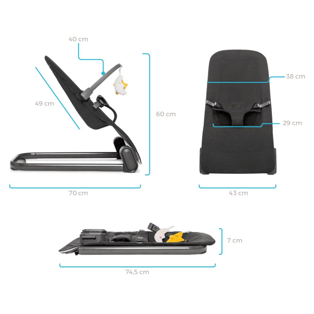 Přirozený houpací pohybHoupání v houpačce napodobuje uklidňující pohyby, které vaše miminko zná z prenatálního období, pomáhá mu uklidnit se a usnout. Jemné houpání podporuje rozvoj vestibulárního aparátu, který je důležitý pro rovnováhu a koordinaci. |