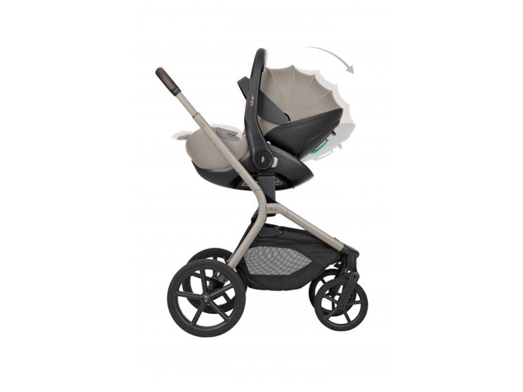 S pomocí adaptérů lze autosedačku umístit také na podvozek kočárku KikkaBoo Goya Platinum a vytvořit tak kompletní cestovní systém – spící miminko přesunete z auta do kočárku bez probuzení.