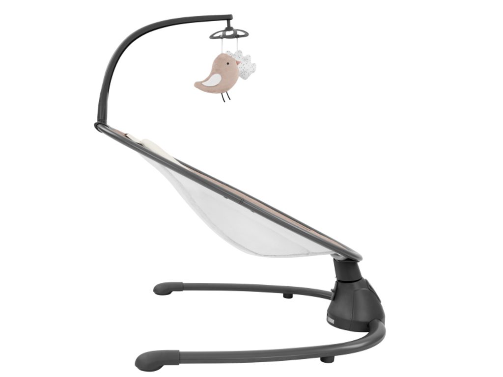 Lehátko nabízí boční pohyb s 5 nastavitelnými rychlostmi, které napodobují přirozené houpání v náruči. Senzor pohybu automaticky aktivuje houpání při pohybu nebo pláči dítěte. Relaxační atmosféru vytváří hudební panel s 12 melodiemi a 5 uklidňujícími zvuky přírody. Pomocí časovače můžete nastavit délku houpání na 15, 30 nebo 60 minut podle potřeb dítěte.