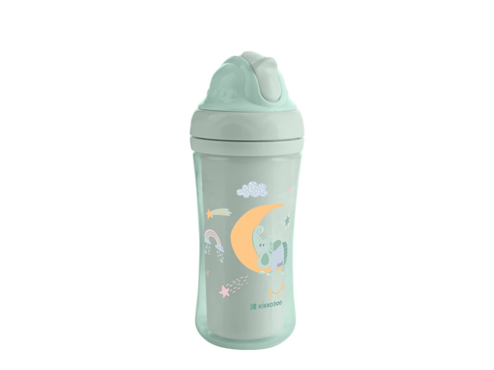Dětský hrnek KikkaBoo s krásným potiskem je vybaven zaklapávacím měkkým silikonovým brčkem, obsah hrnku je tak ochráněn před vylitím při přenášení.
