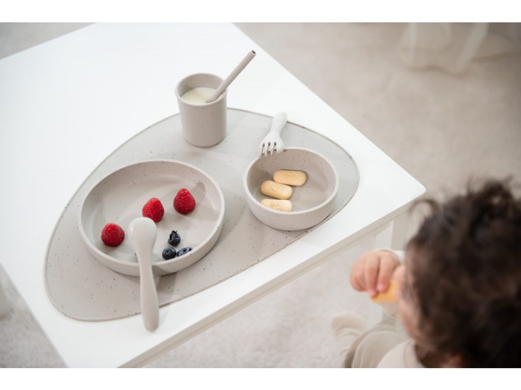 5-dílná jídelní sada KikkaBoo Platinum Silicone nabízí vše, co potřebujete pro samostané stolování vašeho dítěte od 6 měsíců: Talíř se zvýšeným okrajem pro snadné nabírání Kelímek na pití o velikosti vhodné pro dětské ruce Lžička a vidlička ergonomického tvaru s měkkými hranami šetrnými k dětským dásním Miska pro polévku, kaši apod. Prémiový silikonový materiál: Vyrobeno ze 100 % potravinářského platinum silikonu – měkký, pružný materiál bez zápachu Bez BPA, hypoalergenní a velmi odolný Odolný teplotám od –40 °C do 230 °C – vhodné do mrazáku, mikrovlnné trouby i sterilizátoru Snadná údržba: Vhodné do myčky, mikrovlnné trouby i sterilizátoru Snadno omyvatelný materiál – ideální pro každodenní použití doma i na cestách Rozměry: Talíř: 18,2 × 18,2 × 3 cm, 400 ml Kelímek: 7 × 7 × 8 cm, 150 ml Lžička / Vidlička: 13,8 cm Miska: průměr 13 cm, výška 6,5 cm, 230 ml Složení: 100 % platinum silikon Vhodné pro děti od 6 měsíců.