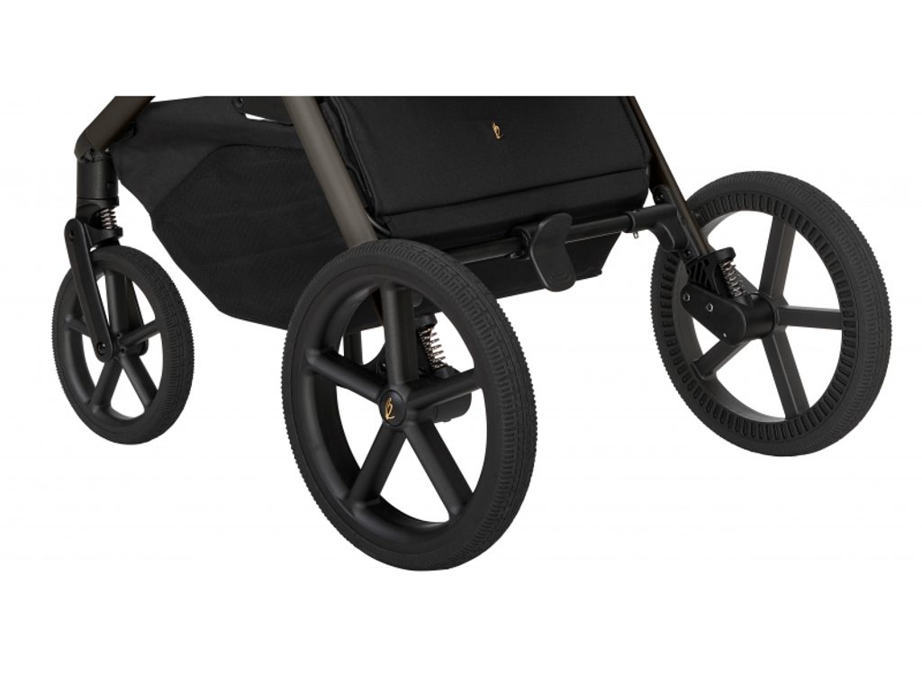 Jízdu zjemňuje odpružení všech čtyř kol a velká kola (11,5" zadní a 8" přední), která zvládnou i horší chodníky. O bezpečné zastavení se postará „one touch“ brzda, zatímco velký košík s magnetickým zavíráním do 10 kg pojme nákup i všechny dětské nezbytnosti.