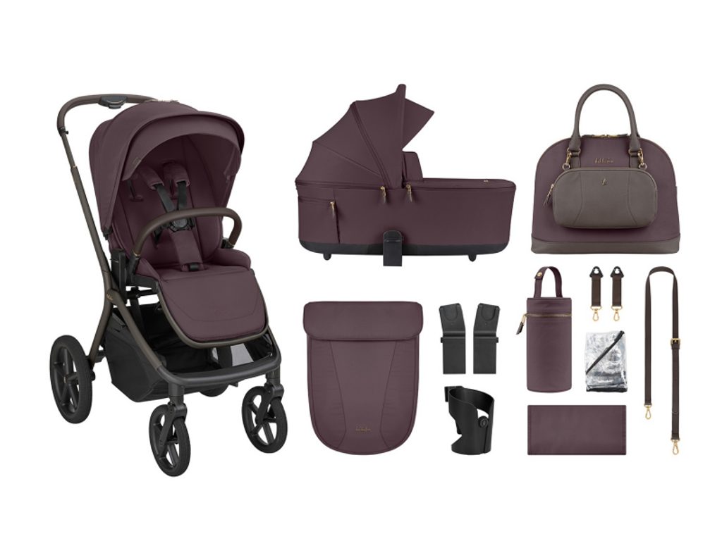 Součástí balení je luxusní přebalovací taška s přebalovací podložkou a termo pouzdrem, nánožník ke sportovnímu sedáku, nánožník ke korbičce, adaptéry na korbičku a autosedačku, pláštěnka, držák na nápoj a extra sluneční clona. Kočárek je tak připravený na každodenní používání bez nutnosti dokupovat základní výbavu.