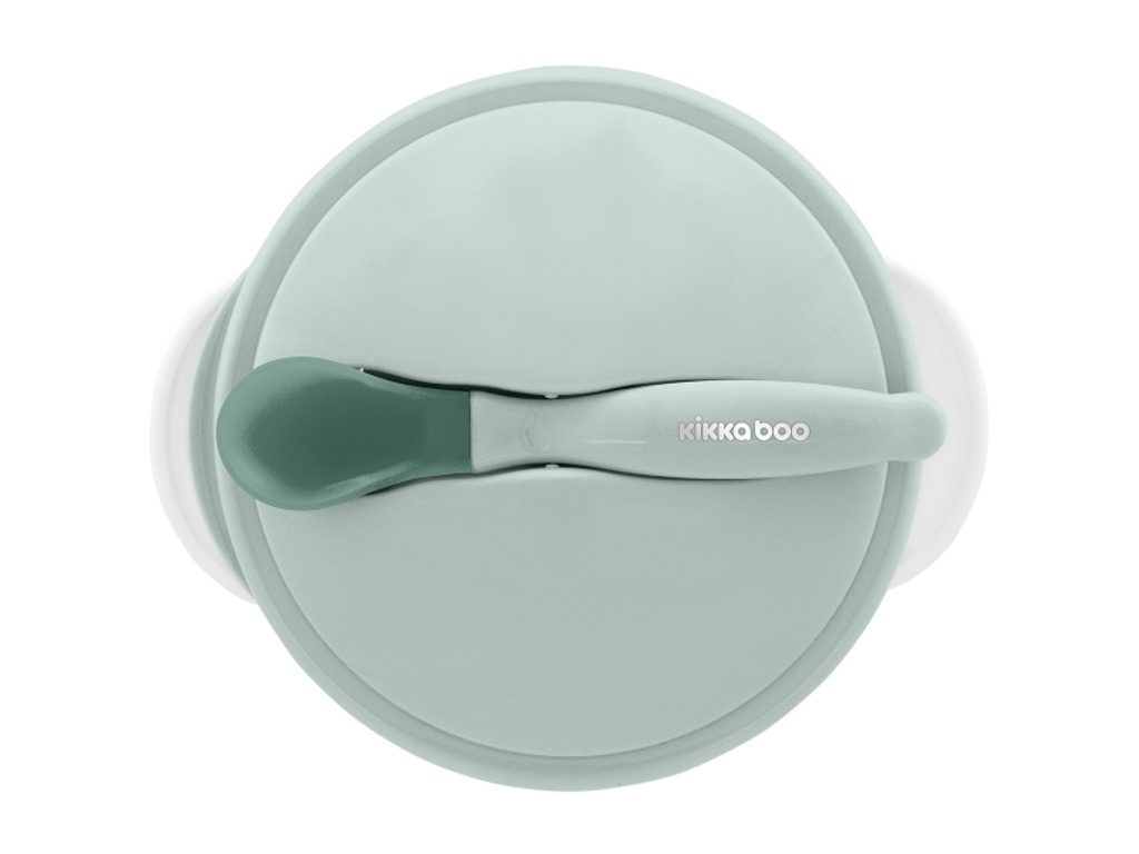 KikkaBoo Miska s přísavkou, víčkem a lžičkou s tepelným senzorem Mint