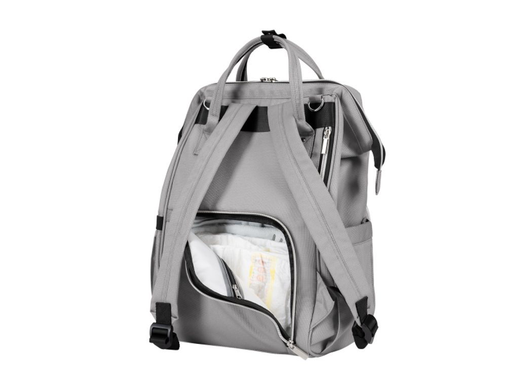 Dvě termoizolační kapsy pomáhají udržet nápoje či mléko po delší dobu v optimální teplotě. Součástí batohu je i přebalovací podložka.