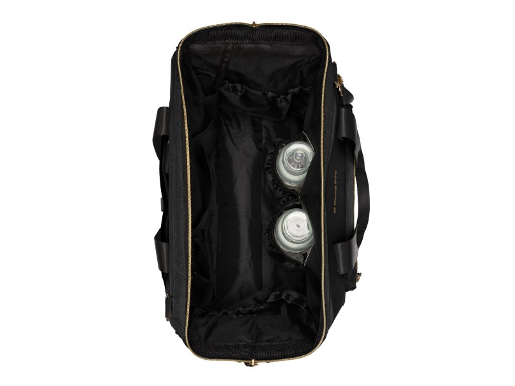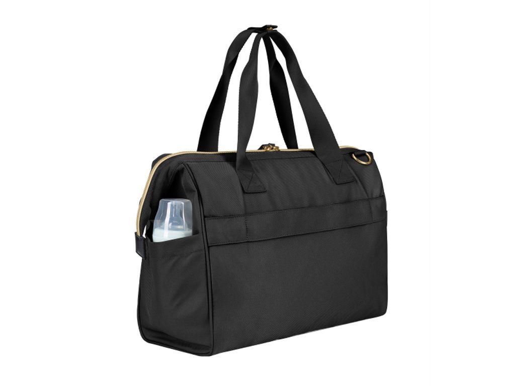 Taška je navržena s širokým otevíráním, které usnadňuje přehledné uspořádání a rychlý přístup k uloženým věcem. Na vnější straně se nachází kapsy se zipem a speciální kapsa pro láhev. Součástí tašky je také odnímatelné pouzdro na drobnosti a praktická přebalovací podložka.