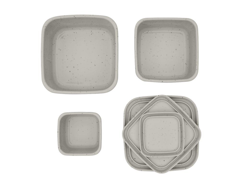 Všestranná sada boxů na svačinu KikkaBoo Platinum Silicone je ideálním společníkem pro bezpečné přenášení svačiny. Tři velikosti nabízí praktické řešené pro malé i velké svačiny, od ovocného pyré až po kousky zeleniny, sendvič či sušené ovoce. Stupnice uvnitř boxů umožňuje snadné dávkování a sledování porcí. Kvalitně těsnicí víčko chrání obsah boxu před vysypáním či vytečením při přenášení. Pro úsporu místa při skladování se boxy snadno vkládají do sebe. Prémiový silikonový materiál: Vyrobeno ze 100 % potravinářského platinum silikonu – měkký, pružný materiál bez zápachu Bez BPA, hypoalergenní a velmi odolný Odolný teplotám od –40 °C do 230 °C – vhodné do mrazáku, mikrovlnné trouby i sterilizátoru Snadná údržba: Vhodné do myčky, mikrovlnné trouby i sterilizátoru Snadno omyvatelný materiál – ideální pro každodenní použití doma i na cestách Rozměry: Box 150 ml: 7,8 × 7,8 × 5,4 cm, 86 g Box 400 ml: 11,2 × 11,2 × 6,1 cm, 172 g Box 600 ml: 13,5 × 13,5 × 7,1 cm, 285 g Složení: 100 % platinum silikon Balení obsahuje 3 boxy.