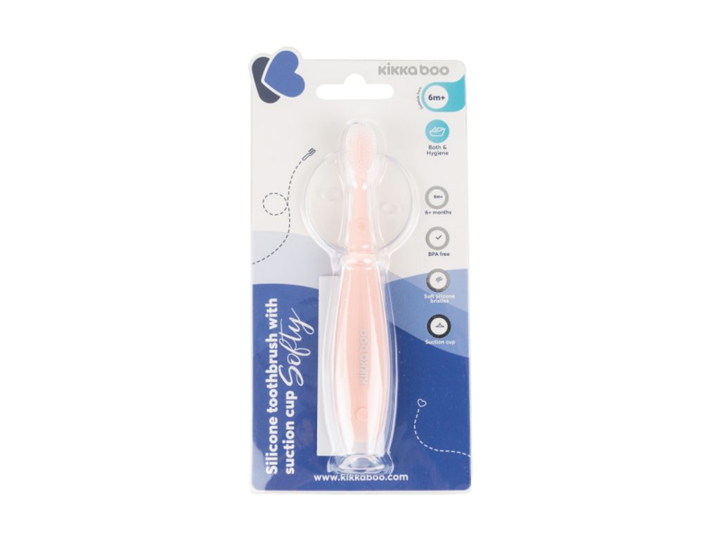 Kartáček na zuby pro nejmenší z jemného, měkkého silikonu má protiskluzovou rukojeť a kruhovou zábranu pro bezpečné čištění prvních zoubků dítěte. Přísavka umožňuje uchycení kartáčku na umyvadlo, když jej nepoužíváte. Rozměry: 12,8 x 4,1 x 4,1 cm Vhodné pro děti od 6 měsíců.