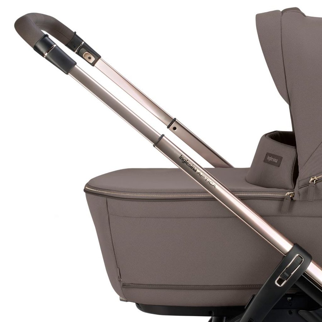 Inglesina Aptica 4v1 Recline je all-in-one řešením, které zahrnuje vše potřebné pro různé fáze růstu dítěte. Set obsahuje hlubokou vaničku s matrací a Welcome Pad™, stojan Stand Up™, autosedačku Darwin Recline EVO R129, sportovní sedačku All Season s boudičkou a zateplovací vložkou, nový podvozek Aptica, prostorný košík a držák pohárku. Tento komplexní systém zajišťuje bezproblémové přechody mezi kočárkováním, autem a domácím použitím, s důrazem na praktičnost a dlouhodobou použitelnost.