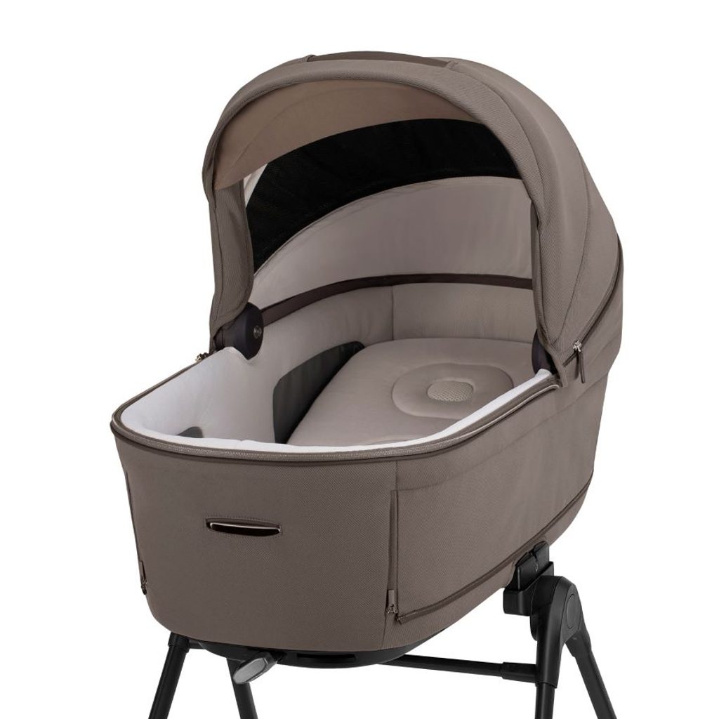 Srdcem systému je nová hluboká vanička Open Up s 5 zavíratelnými okénky, které zajišťují dokonalou ventilaci a umožňují oční kontakt s dítětem. Díky nim může miminko v pohodlné poloze leže objevovat svět kolem sebe, což podporuje jeho vývoj a posiluje vazbu s rodiči. Vanička je vybavena ovládáním boudičky Quick Connect jen jednou rukou pro maximální pohodlí. Součástí je také matrace Welcome Pad™, která poskytuje optimální ergonomickou péči o miminko v prvních měsících, a stojan Stand Up™, který vaničku promění v praktickou přenosnou postýlku nahrazující klasickou postýlku doma.