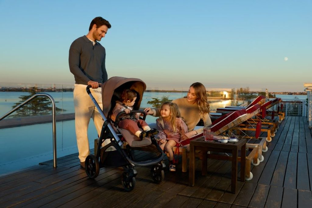 Srdcem systému je nová hluboká vanička Open Up s 5 zavíratelnými okénky, které zajišťují dokonalou ventilaci a umožňují oční kontakt s dítětem. Díky nim může miminko v pohodlné poloze leže objevovat svět kolem sebe, což podporuje jeho vývoj a posiluje vazbu s rodiči. Vanička je vybavena ovládáním boudičky Quick Connect jen jednou rukou pro maximální pohodlí. Součástí je také matrace Welcome Pad™, která poskytuje optimální ergonomickou péči o miminko v prvních měsících, a stojan Stand Up™, který vaničku promění v praktickou přenosnou postýlku nahrazující klasickou postýlku doma.