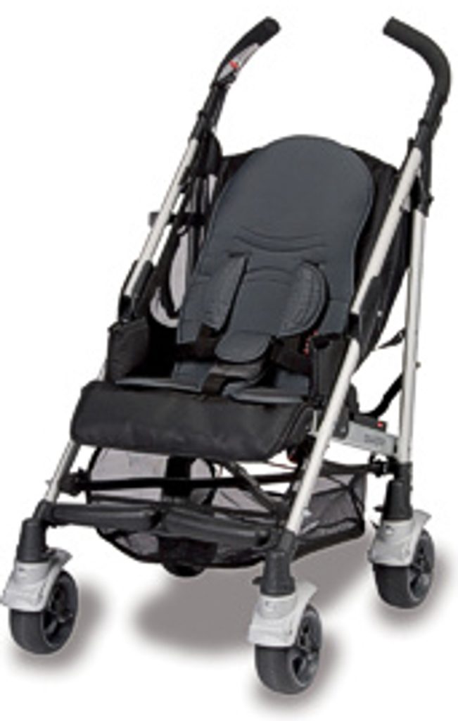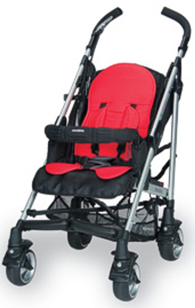 Součástí jsou čtyřbodové bezpečnostní popruhy se sponou pro zakliknutí v mezinoží