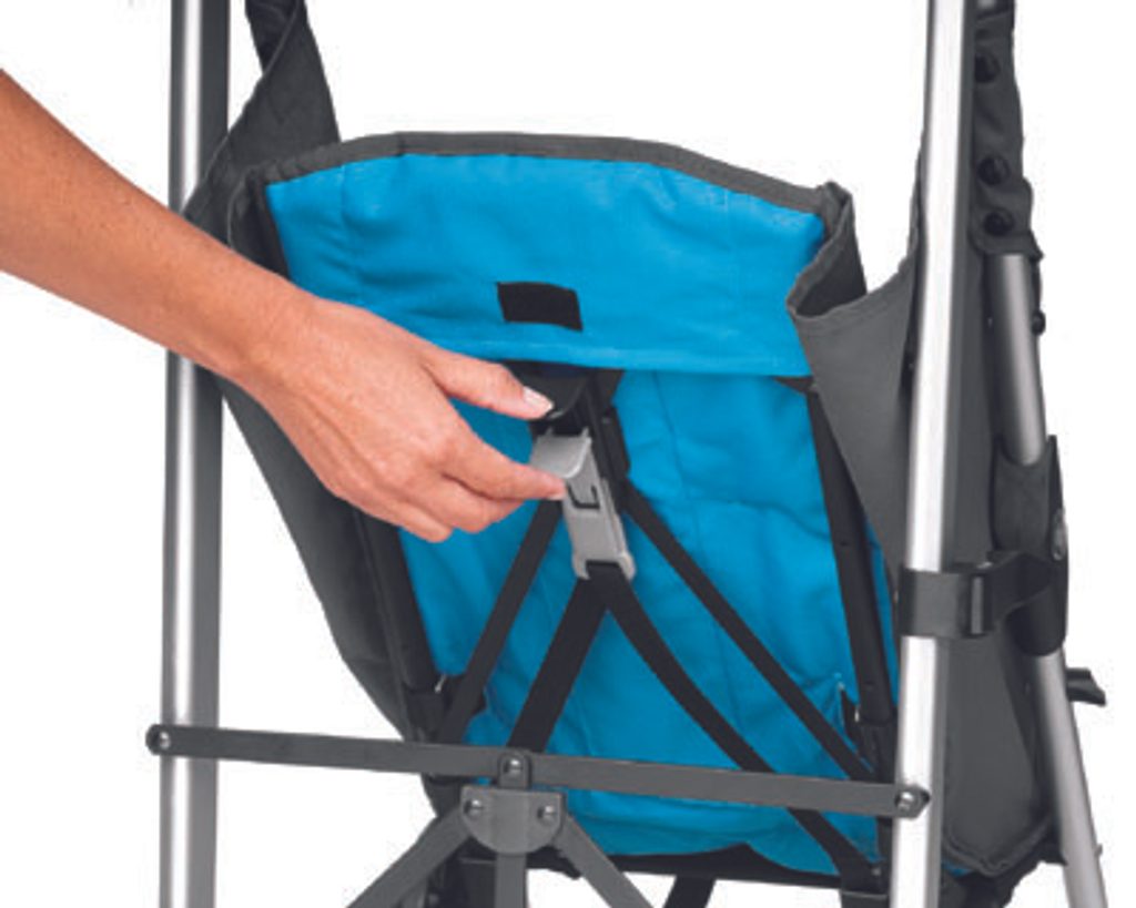 • Polstrovaná opěrka zad nastavitelná do 5-ti poloh s možností polohy do lehu, 5-ti bodový bezpečnostní pás.